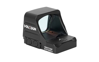 The HS507COMP handgun sight features a large 1.1″ x 0.87″ objective lens for enhanced shooting performance and Holosun’s new Competition Reticle System (CRS) available with a red LED. CRS is an enhanced Multi-Reticle System with four components including a precision 2MOA dot, an 8MOA circle, 20MOA circle, and 32MOA circle with multiple combination settings to suit individual shooter’s preferences.